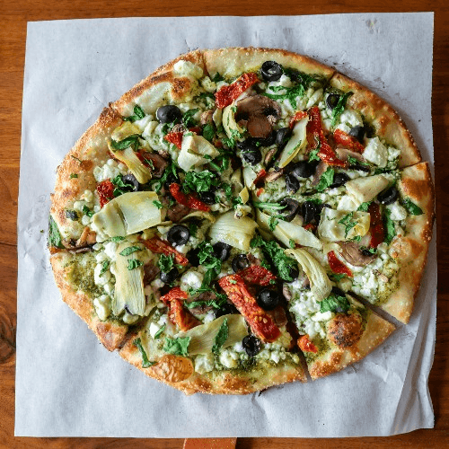 Marinara, Three Cheese, Feta, Parmesan, Oregano, Italian Seasoning & Bacon